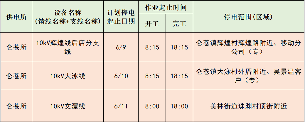 [拍报] 【停电预警】仑苍部分地区6月9/10/11日停电信息