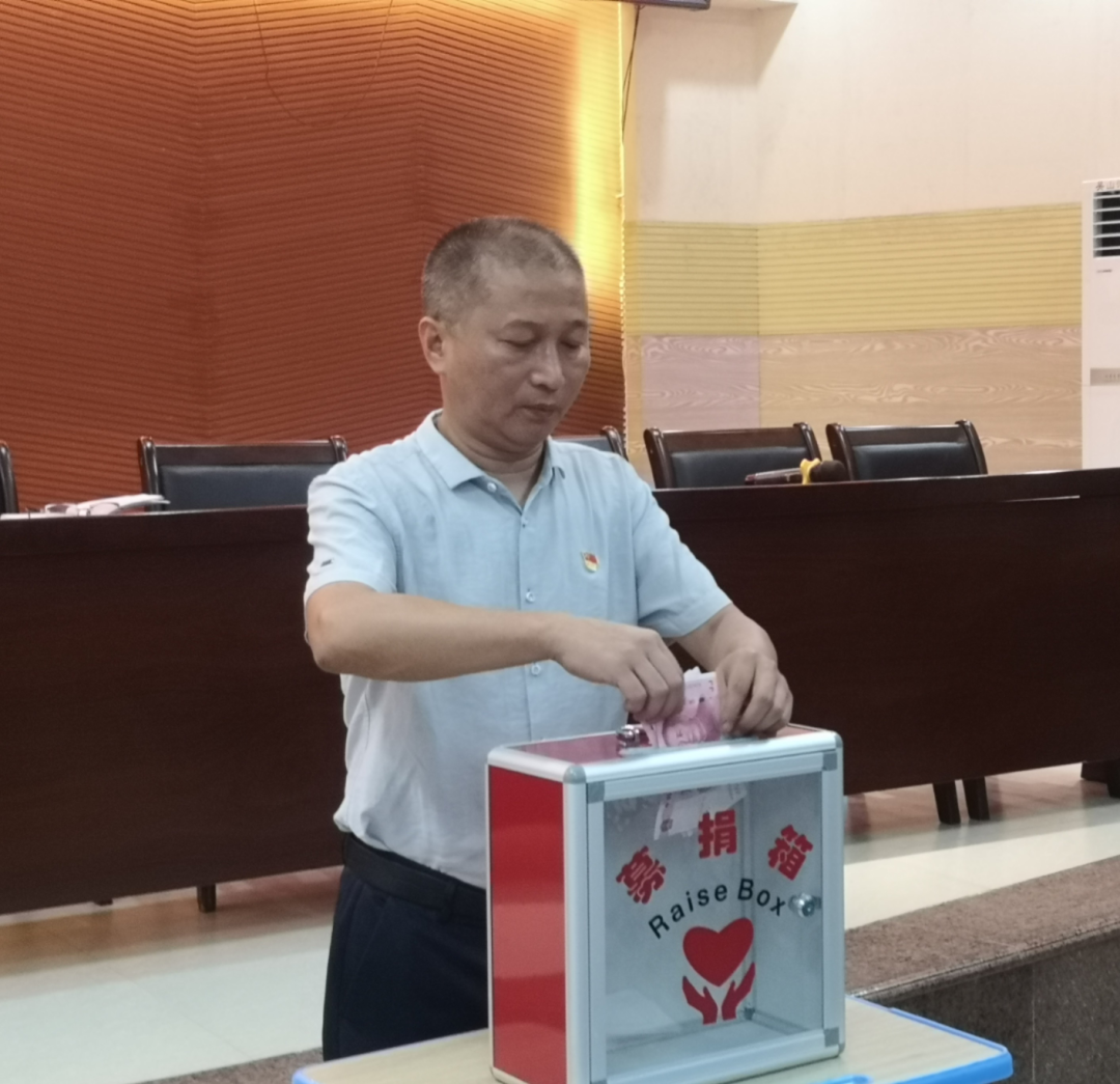 捐赠环节中,学校领导班子做出表率,带头捐款。在校领导的带领下,老师们有序献出自己的一份爱心,愿点滴付出,汇成爱的暖流。